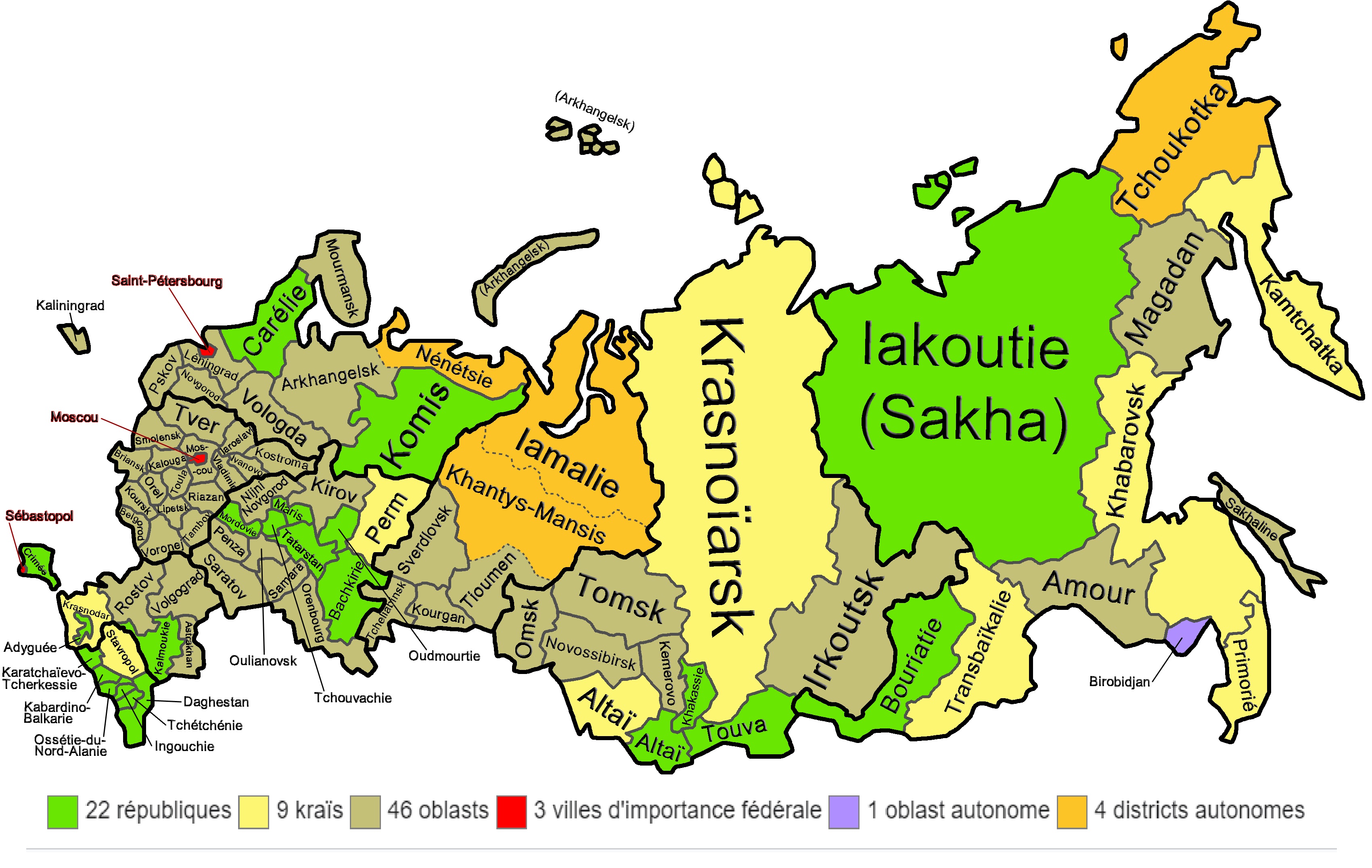 Carte des divisions administratives de la Russie